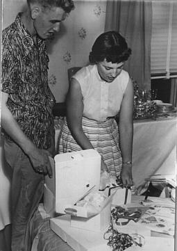 (Lucille and Dyb opening gifts)